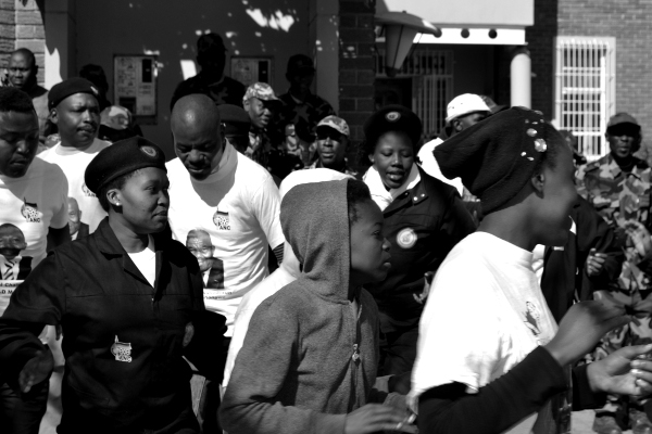 Photo by: Jan Truter So I sat this morning thinking about a good topic to start the first real page off with and while browsing I came upon a post on facebook about a service delivery protest in Standerton this morning.Not feeling very inspired I took the camera and headed to town, since I had some stuff to do any case. I thought I might as well go and check out this protest while I'm there.Upon my arrival in town everything seemed quit and peaceful not at all what I expected, after walking around a bit and asking some people where the protesters are I was told they were expected to arrive a bit later.The mood was generaly a bit tense since nobody realy knew what to expect from the protesters and in the past things did get out of hand once or twice, some shops even gave their staff the day off and closed up business. Photo by: Jan Truter While waiting I continued shooting random strangers and chatting to some of the locals, eventually I noticed a small gathering of people in front of the municipal offices and I headed in that direction feeling a bit apprehensive.Upon arriving, there were some protesters and a whole bunch of A.N.C veterans in uniform milling around,so I took out my camera and started shooting the scene. I wasn't even two minutes in before some guy in a cammo uniform stuck his hand in front of the lens and demanded that I stop photographing them.I asked him why he doesn't want me taking photos since it is a public place and it was in the publics interest to take photos and document the happenings, but instead of answering he just kept on saying"No pictures, no pictures"Since I realised there was no way of convincing Mr. No pictures I lowered the camera and pretended to turn around and leave.I took a few steps to the left and noticed he had turned around and was heading the other way so I started shooting again. Photo by Jan TruterIn my mind I was thinking O.K. the police are around there are lots of other people and the law is on my side what is the worst that can happen?The next minute I saw something in my viewfinder that almost made me lose my composure and run, a guy in cammo's coming at me with a "sjambok" Frozen in place I just pressed the shutter and kept shooting.  Photo by: Jan TruterLuckily for me before he could reach me he was stopped by some of his colleges and led away, I was then approached by a fat bellied older man also in uniform, he apologised and said that he was the "Commander" in charge and that I can continue taking pictures and he was sorry for his peoples bad behaviour.I hung around for a few more minutes and took a couple of shots but my heart wasn't in it anymore since it was sitting in my throat.  Photo by: Jan TruterThe moral of this story is go out there and take pictures of everything but be careful, our country is full of interesting and colour-full people but some are more tolerant than others, weigh up the pros and cons and decide for yourself if the shot is worth your life, after all we are doing it for the love of photography and we are not getting paid to risk our lives.  Photo by : Jan Truter